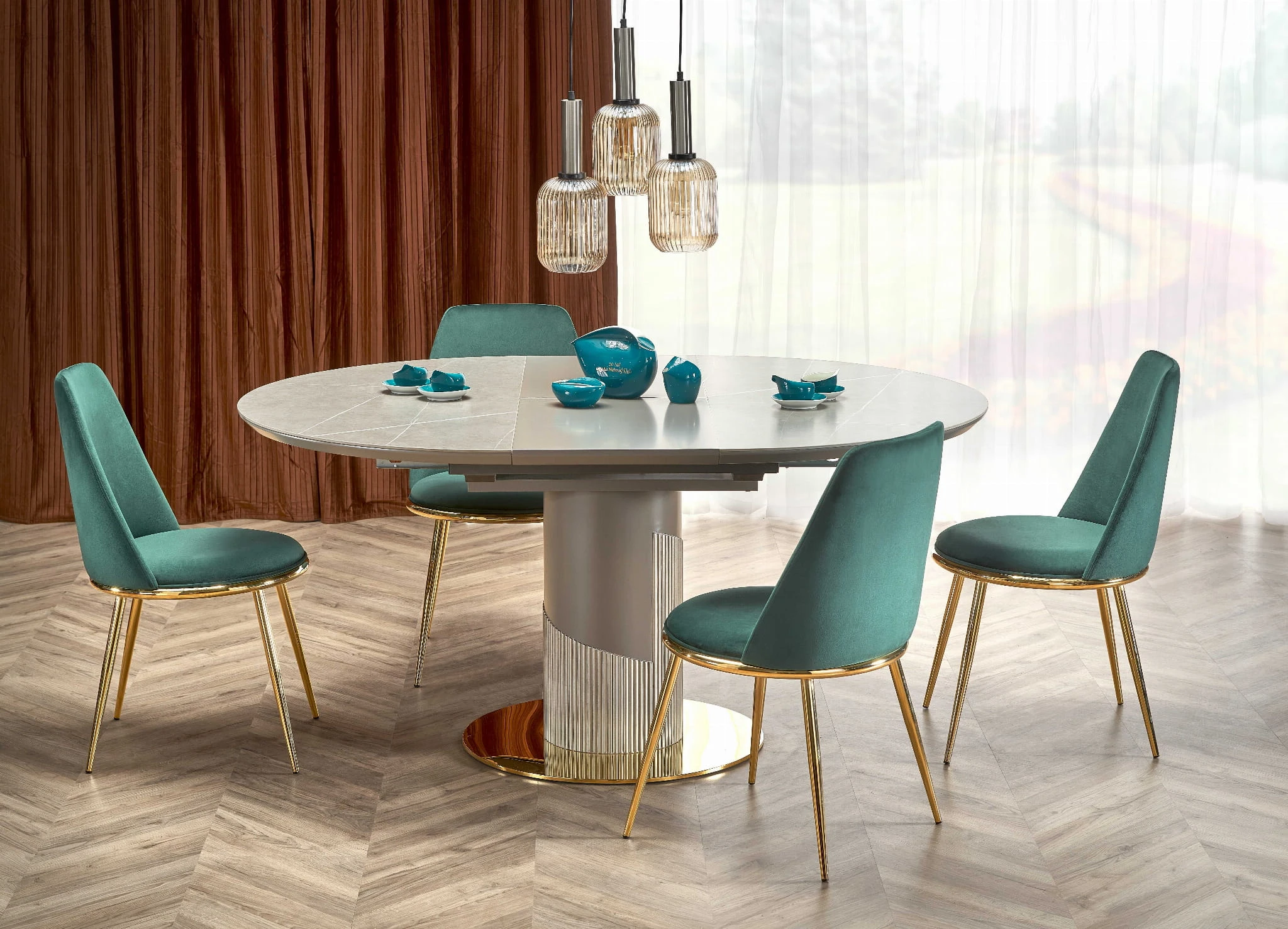 Stół MUSCAT Halmar doskonale sprawdzi się w jadalni, salonie lub przestronnej kuchni, stając się eleganckim centrum domowej przestrzeni.