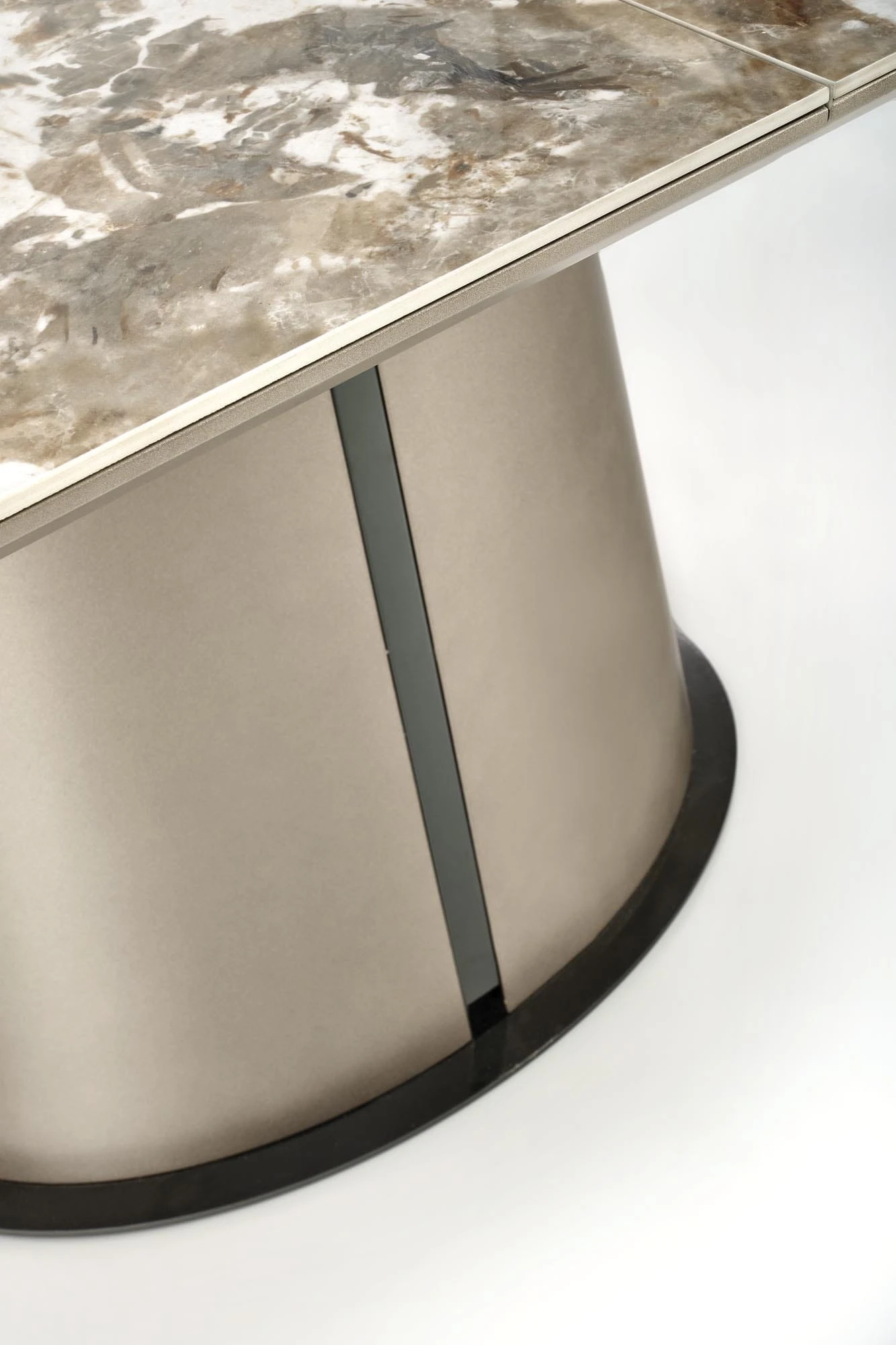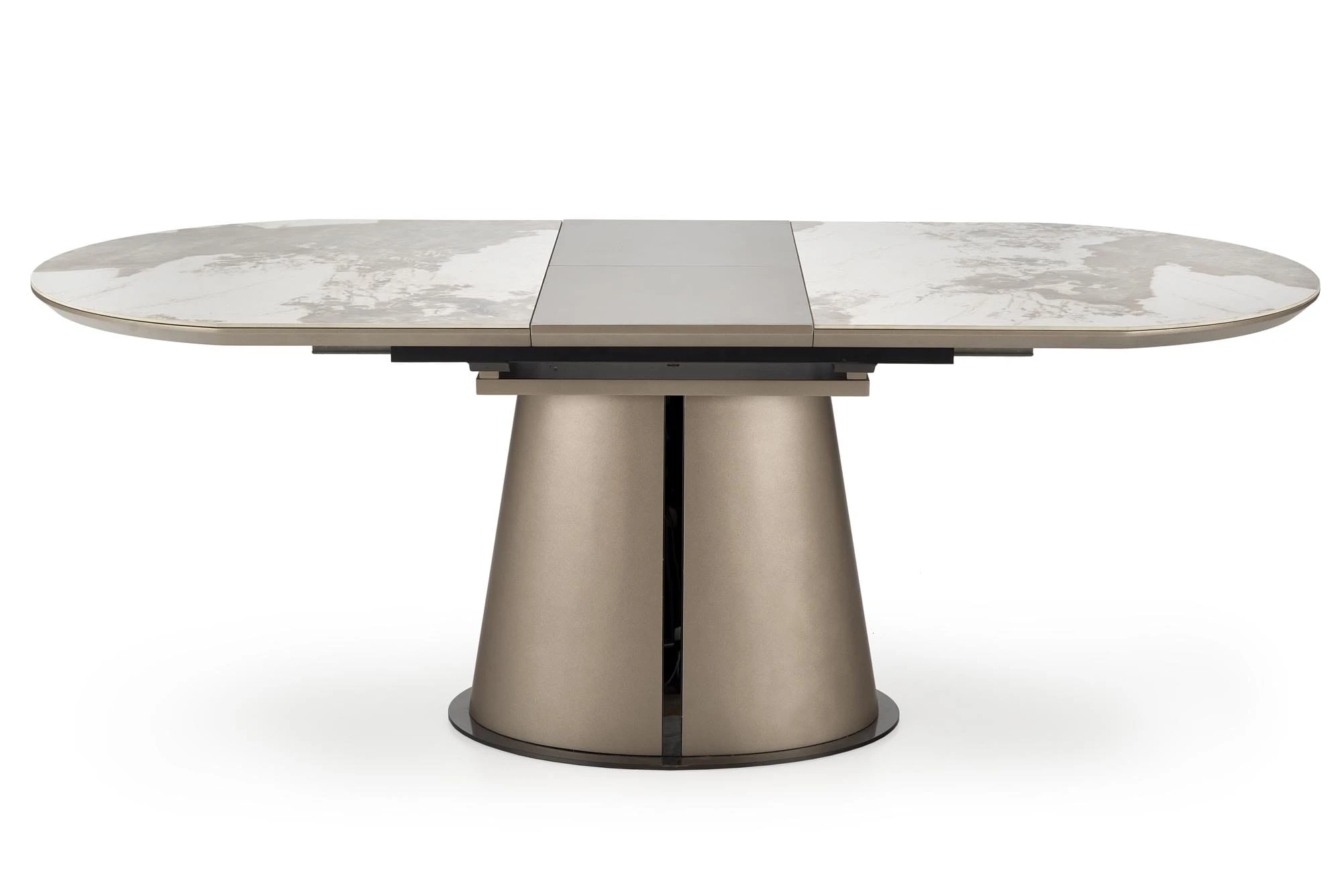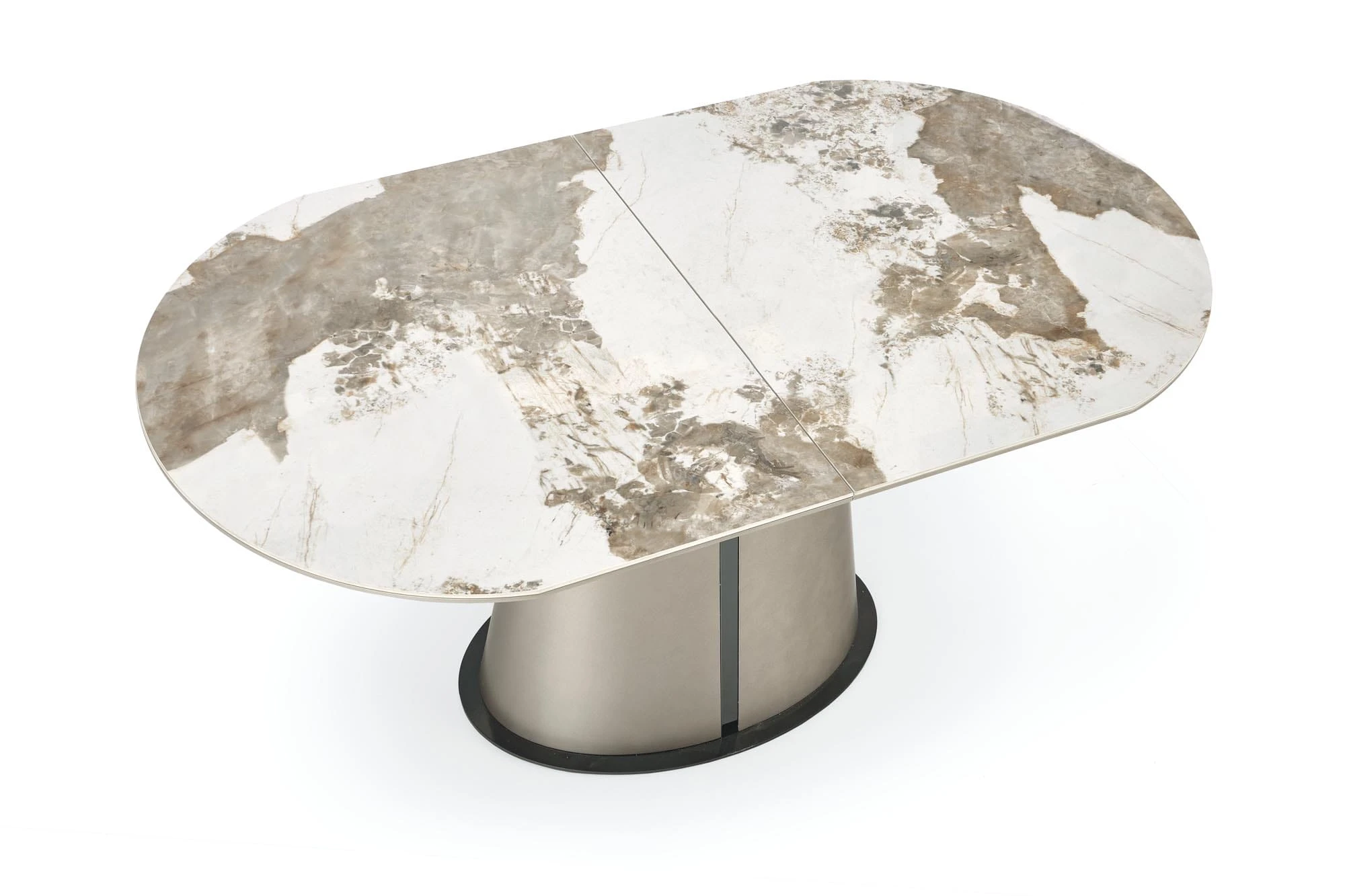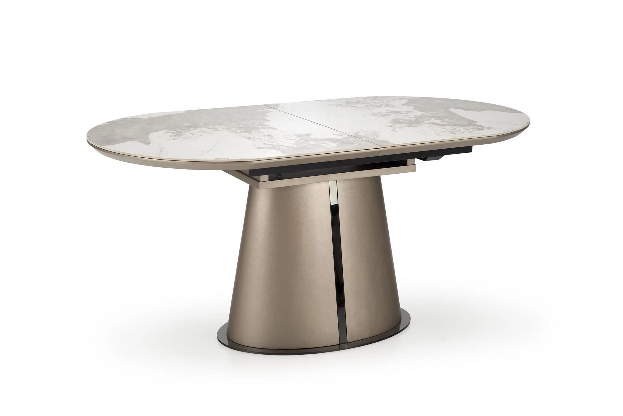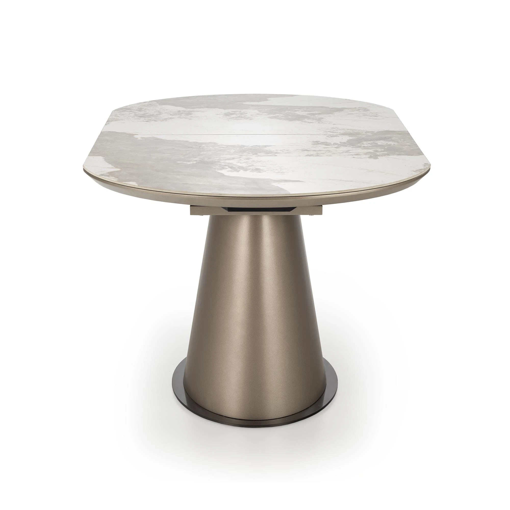 Elegancki stół rozkładany ROBINSON marki Halmar to idealne połączenie nowoczesnego designu, funkcjonalności i ponadczasowej estetyki. Owalny blat w kolorze beżowego marmuru cappuccino nadaje wnętrzu luksusowy charakter, doskonale komponując się zarówno z aranżacjami nowoczesnymi, jak i klasycznymi.