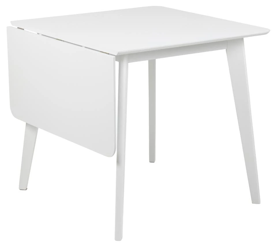 Stół ROXBY to funkcjonalny i stylowy mebel, idealny do mniejszych przestrzeni jadalnianych. Jego wymiary wynoszą 80 cm szerokości, 120 cm długości po rozłożeniu (80 cm w stanie złożonym) oraz 76 cm wysokości, co czyni go kompaktowym rozwiązaniem dla niewielkich pomieszczeń. Blat stołu wykonany jest z płyty MDF malowanej na matową biel, nadając wnętrzu nowoczesny i świeży wygląd. Podstawa oraz nogi stołu są zrobione z drewna kauczukowego, lakierowanego na biało, co zapewnia trwałość i elegancję konstrukcji.