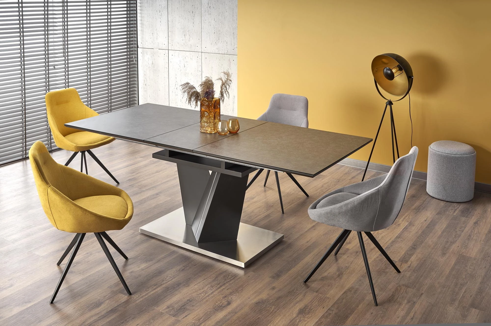 Stół SALVADOR łączy nowoczesny minimalizm z niezwykłą funkcjonalnością. Jego ciemny popielaty kolor nadaje mu elegancji i sprawia, że będzie subtelnym, a zarazem efektownym elementem wyposażenia jadalni lub salonu. Odcień ten doskonale współgra z aranżacjami opartymi na neutralnych barwach, kontrastach czerni lub dodatkach ze stali i szkła.
