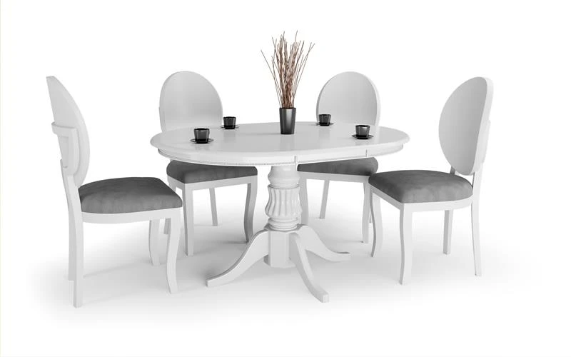 Poniżej biała wersja stołu William w połączeniu z krzesłami Verdi także dostępnych w ofercie naszego sklepu.