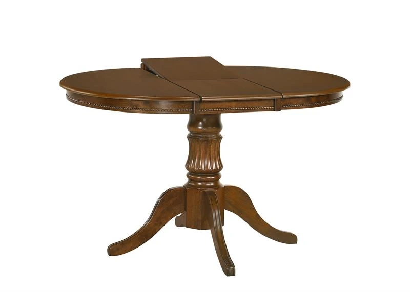 Stół jest rozkładany - złożony ma okrągły blat o średnicy 90 cm - po rozłożeniu stół poszerza się do wymiary 124 cm co może się przydać, w momencie niespodziewanych gości.
