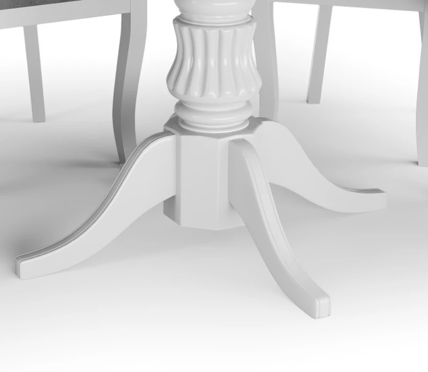 Noga stołu ma kształt toczonej kolumny z czterema podpórkami. Wykonana jest z litego drewna co nadaje stabilności stołowi.