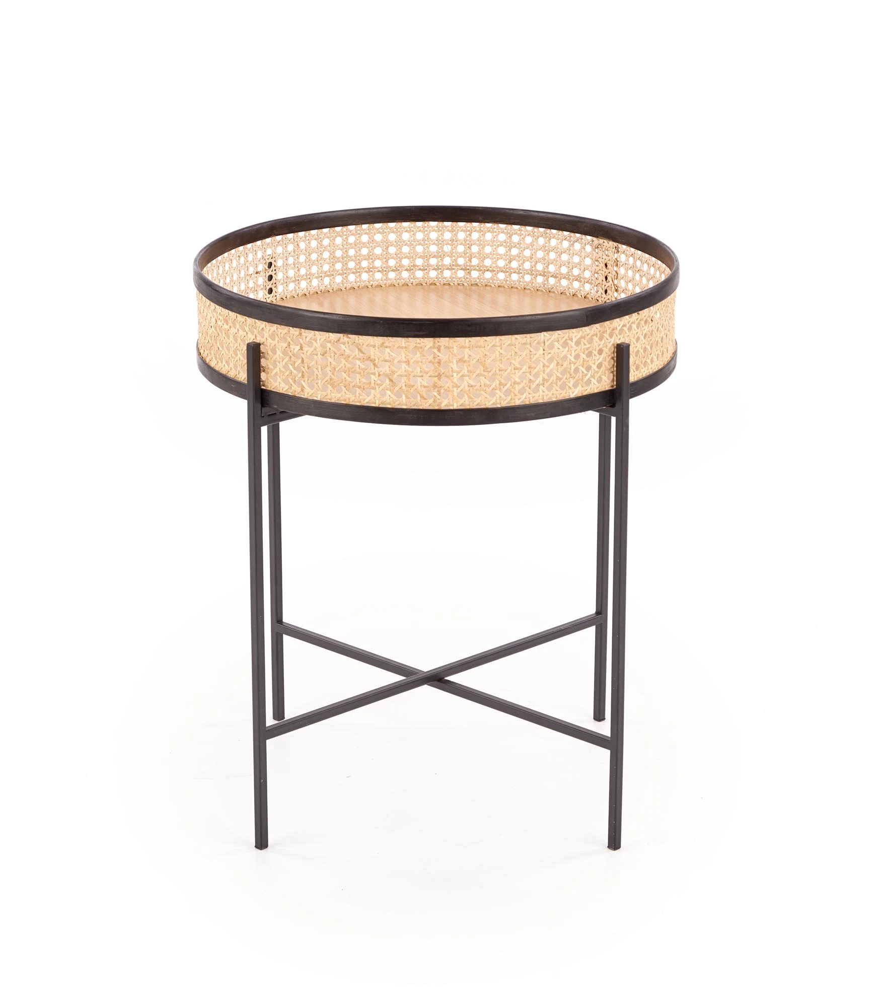 Prezentujemy Państwu lekki, wyjątkowe urody Stolik Lanipa. Zbudowany jest z metalowego stelaża - malowanego proszkowo oraz okrągłego blatu z naturalnego rattanu. Wysokiej jakości materiały odporne na warunki pogodowe sprawiają, ze stolik doskonale sprawdzi się w salonie, poczeklalni czy tarasie lub balkonie. Z racji skromnych rozmiarów (średnica 50 cm) oraz niewielkiej wagi można go łatwo przenosić. Blat nadbudowany jest kilkucentymetrowym obrzeżem, co pomoże w utrzymaniu przenoszonych na stoliku rzeczy.