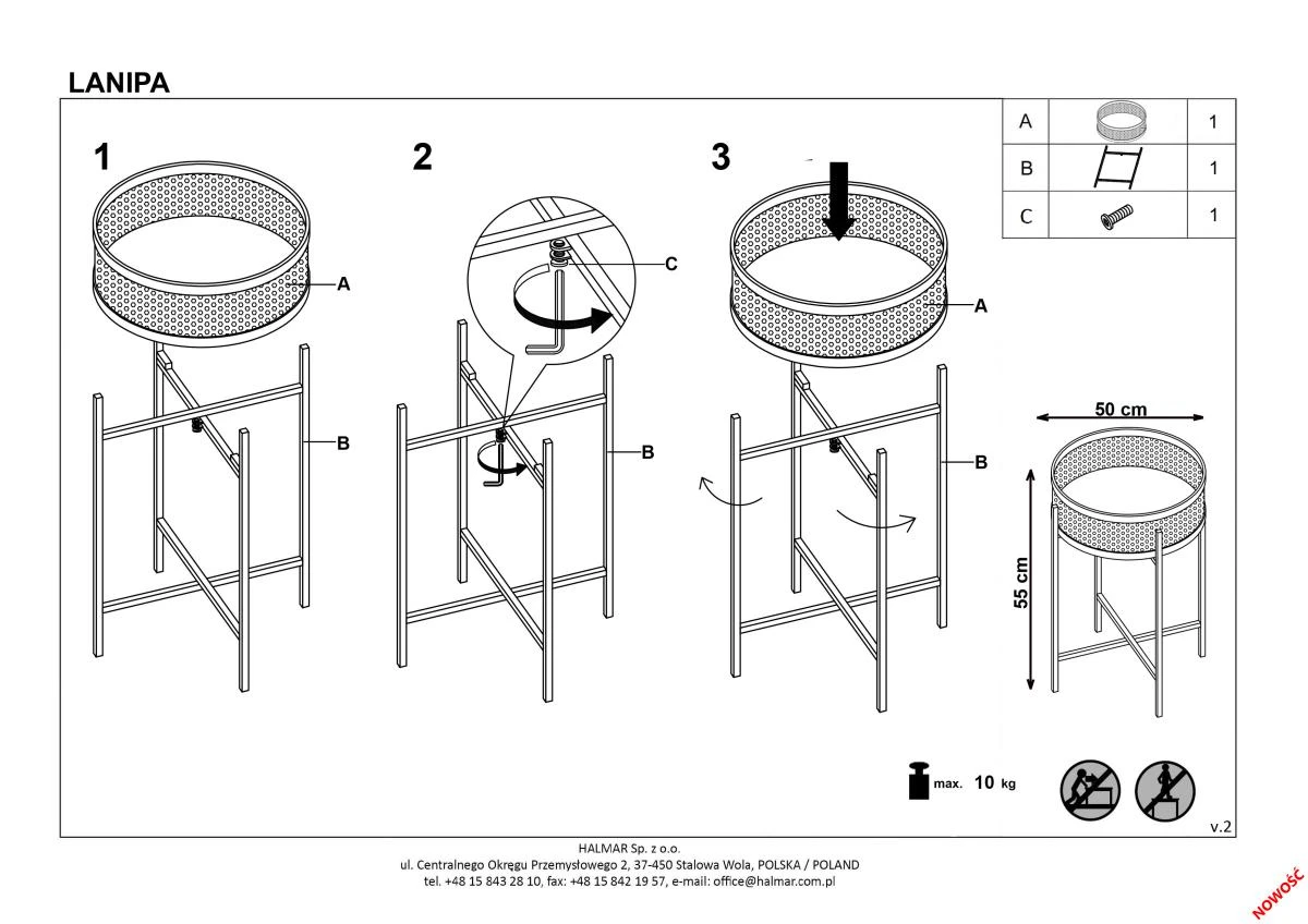 Montaż stolika jest bardzo prosty - trwa około 10 minut. Instrukcją jest dołączona.