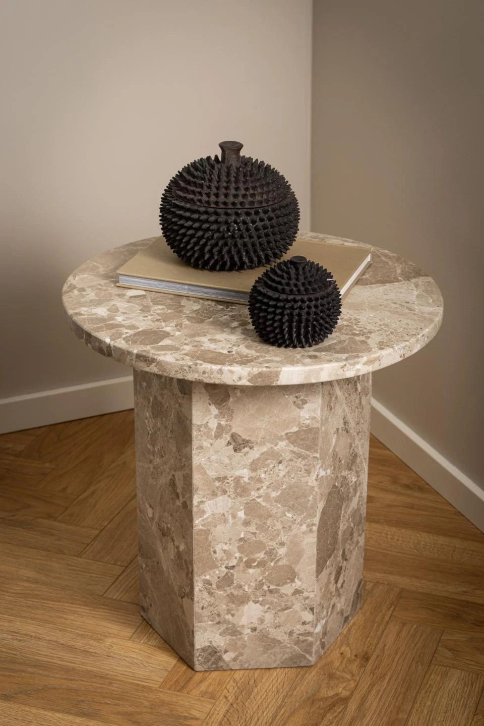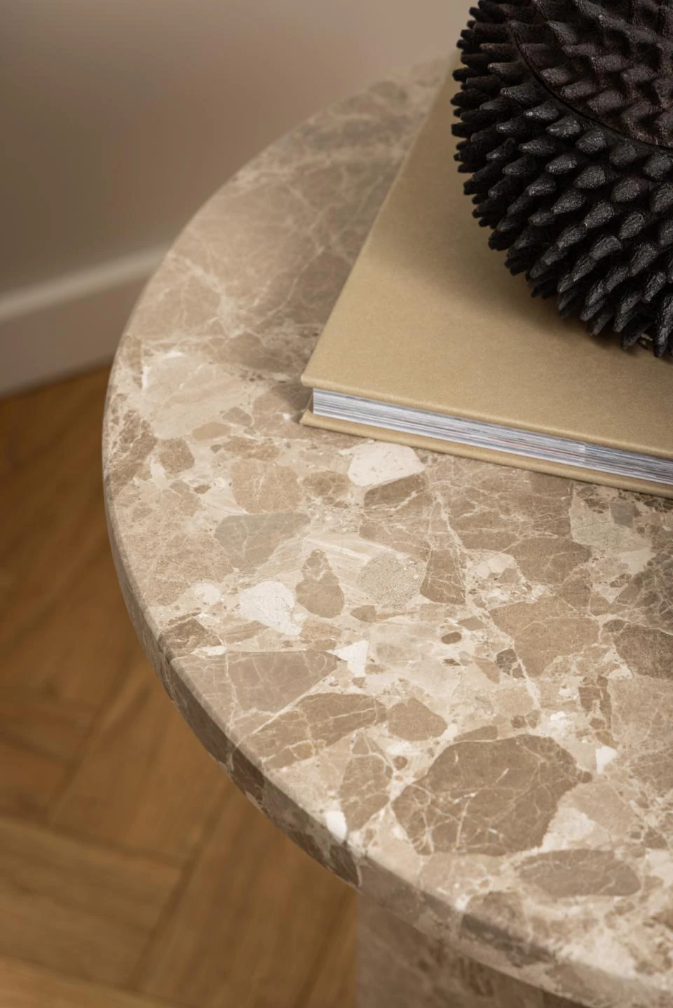 Stolik Naxos to kompaktowy i elegancki mebel wykonany z marmuru w ciepłym odcieniu latte z nutą brązu. Jego okrągły blat o średnicy 50 cm oraz wysokość 50 cm sprawiają, że idealnie sprawdzi się jako stolik pomocniczy lub dekoracyjny w salonie, sypialni czy biurze. Wyrafinowana struktura marmuru, z charakterystycznymi naturalnymi wzorami, dodaje wnętrzu luksusowego charakteru. Solidne wykonanie i uniwersalny design czynią stolik Naxos nie tylko praktycznym, ale także stylowym dodatkiem, który harmonijnie komponuje się z różnymi aranżacjami wnętrz.
