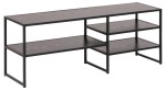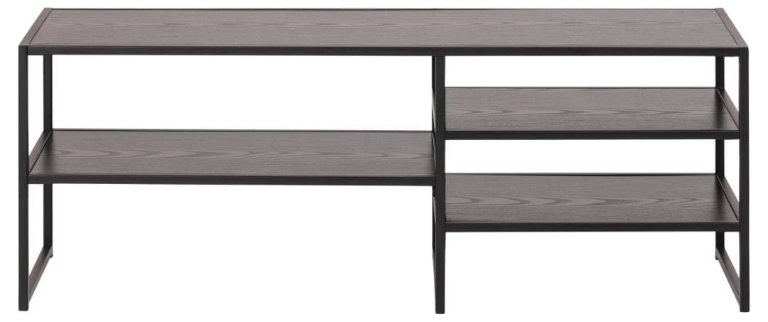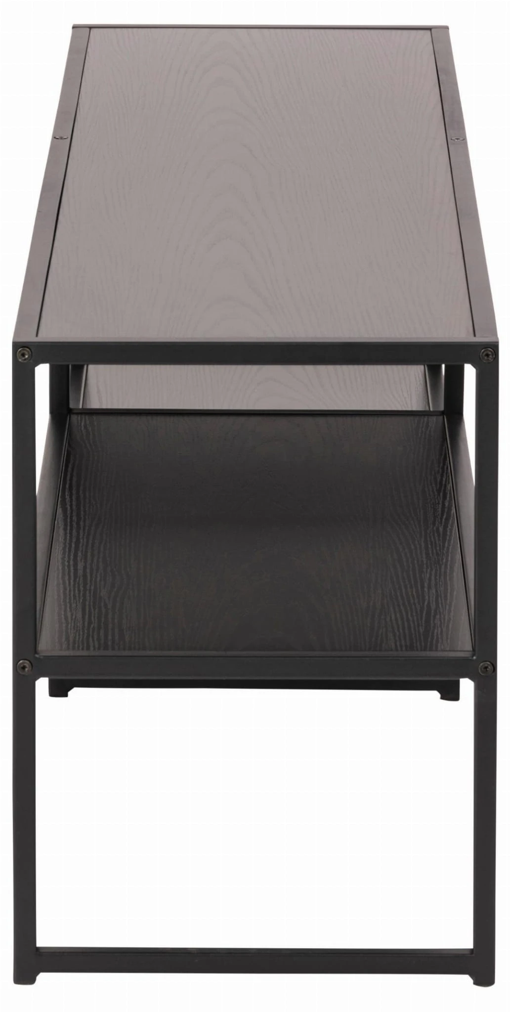 Korpus szafki Seaford TV został wykonany ze stali malowanej proszkowo na kolor czarny, półki natomiast to płyta MDF również w kolorze czarnym.