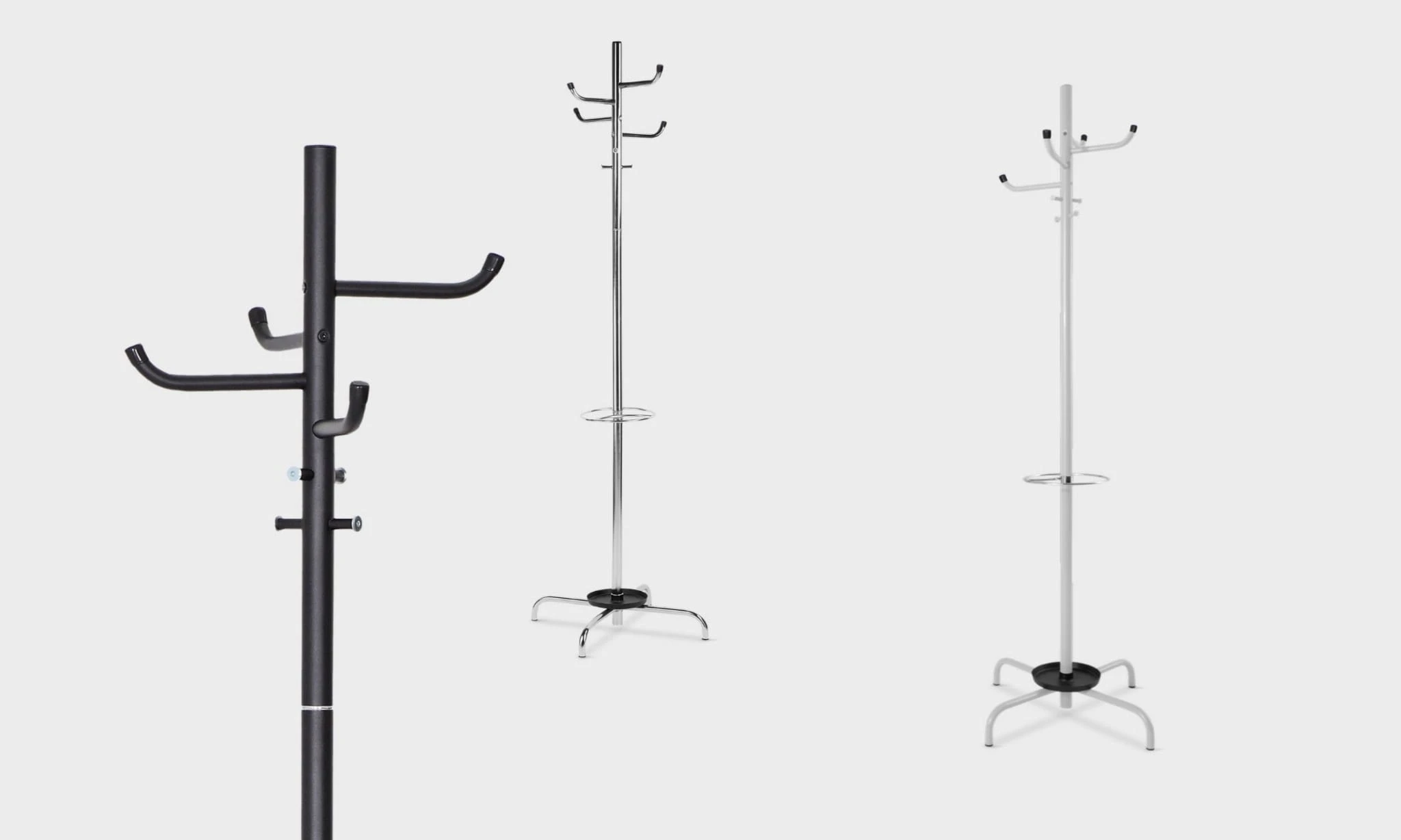 W niższej części wieszak Arizona posiada uchwyt na parasolki w kolorze chrome od dołu wyposażony w tackę koloru czarnego na ociekającą wodę. Powyżej uchwytu znajdują się cztery krótkie wieszaki a w części górnej cztery długie wieszaki w formie haków.