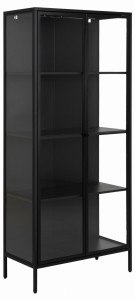 Newcastle to nowoczesna witryna o szklanych drzwiach i stalowej konstrukcji - można uznać, że jest to mebel o nowoczesnym i industrialnym wyglądzie. Cała konstrukcja witryna utrzymana jest w kolorze czarnym, co nadaje jej wyrafinowanego charakteru. Dzięki zastosowaniu szkła hartowanego w drzwiach oraz bocznych ściankach mamy zapewnioną dobrą widoczność przedmiotów umieszczonych wewnątrz.
