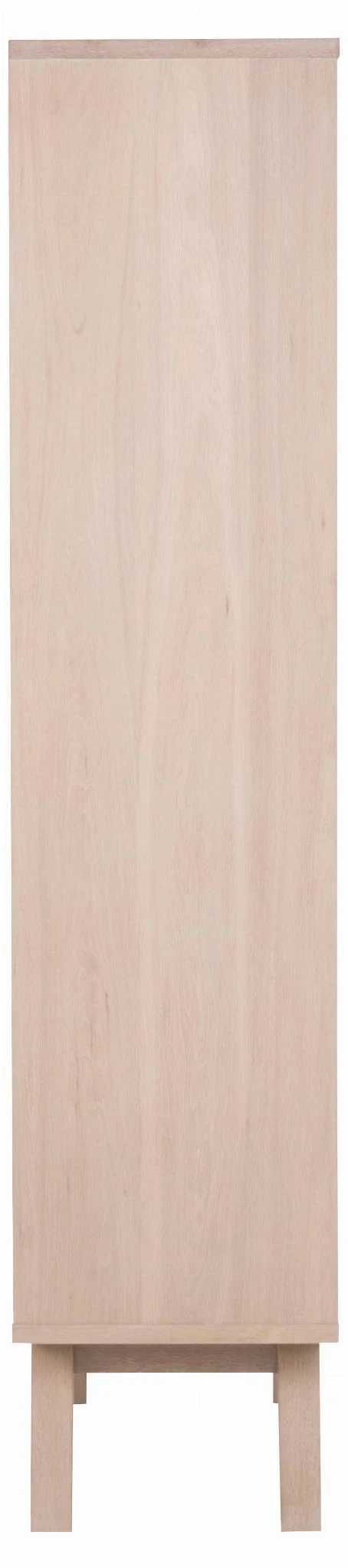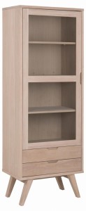 Witryna A-Line w całości wykonany jest z materiałów w kolorze dębu bielonego - nadaje to elaganckiegi i nowocznego wyglądu. Kolor ten nadaje meblowi również wyrafinowanego charakteru co sprawia, że A-Line wzbogaca wystrój każdego pomieszczenia.